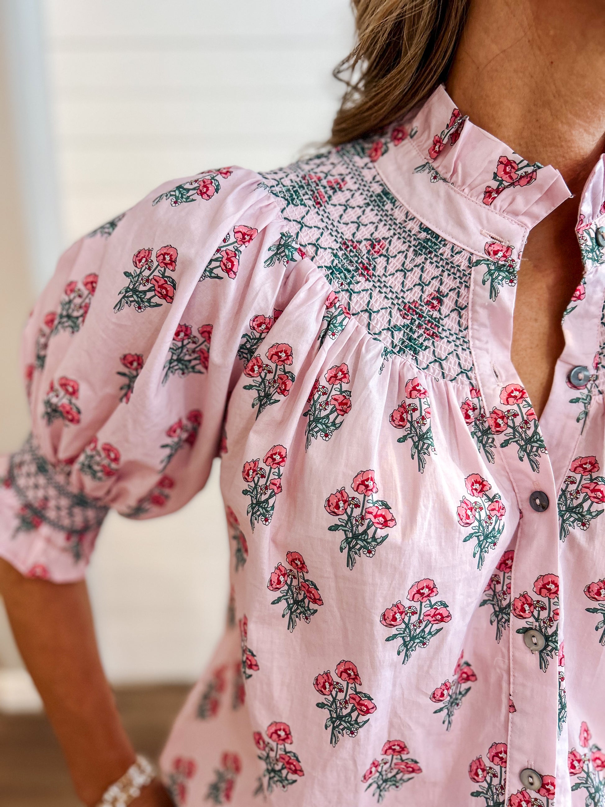 Pink Floral Smocked Top